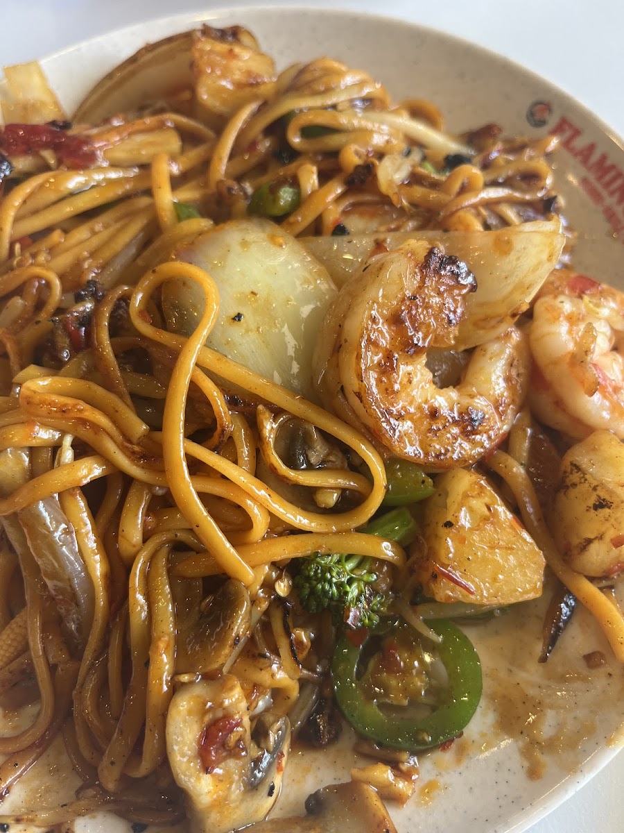 Shrimp Noodle Mushroom Mussel Dumpling Fried Flounder BBQ Rib and Broccoli